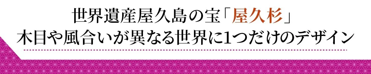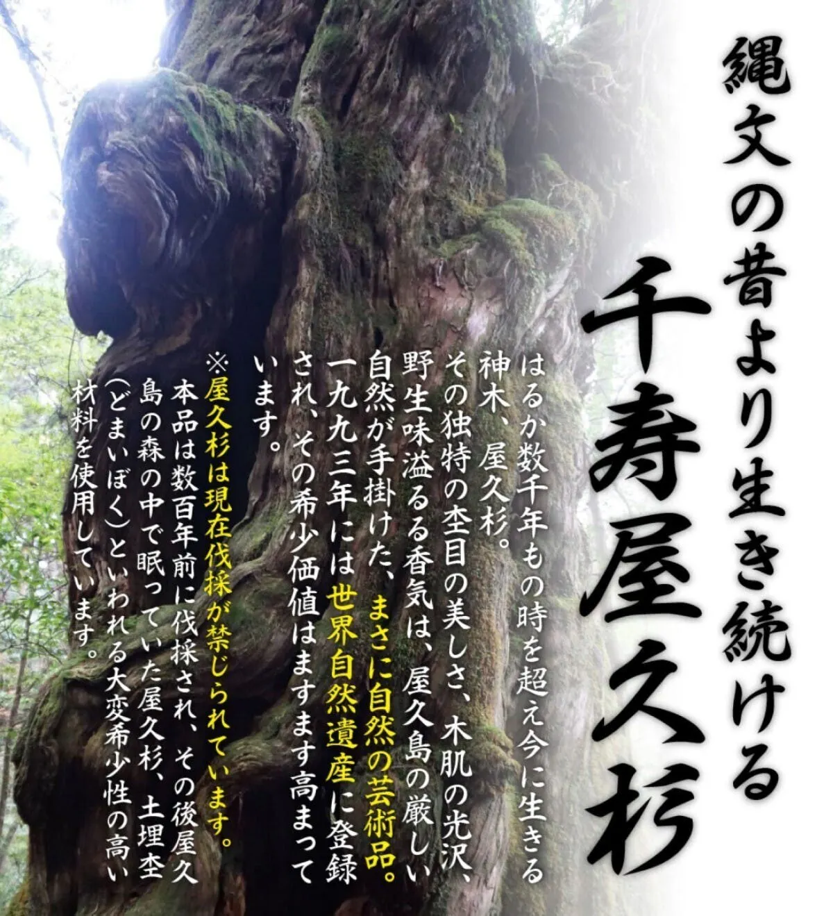 ■本品は世界遺産の宝、屋久島の希少な「屋久杉」(土埋杢・どまいぼく)を贅沢に使用。