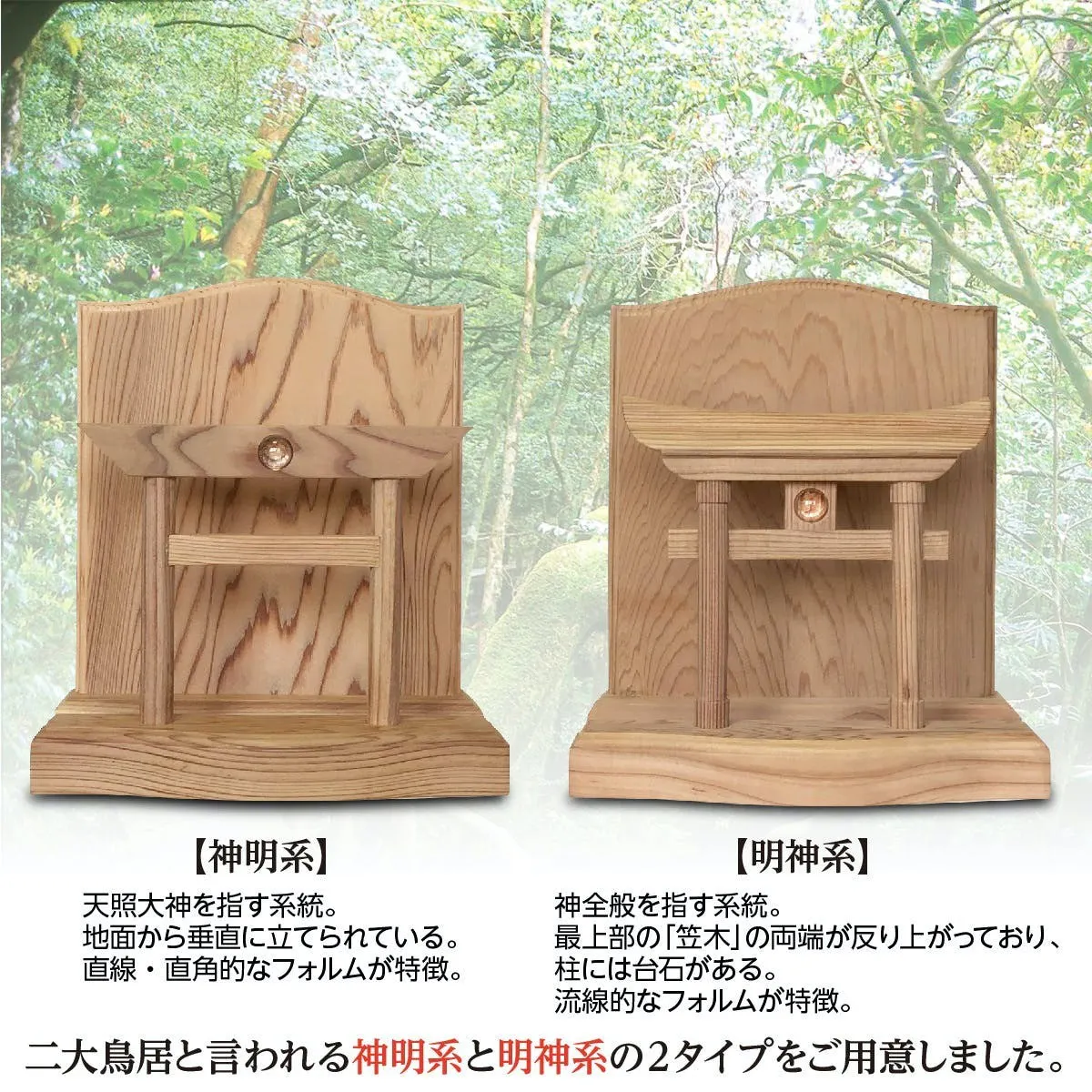 本品はコンパクト・スタンダードタイプともに最小スペースで場所を選ばず、ご自宅やオフィス、店舗など、綺麗にスッキリと御札や御朱印帳をお祀りできます。シンプルでモダンな佇まいは和洋室どちらにも馴染みます。(イメージは明神鳥居)