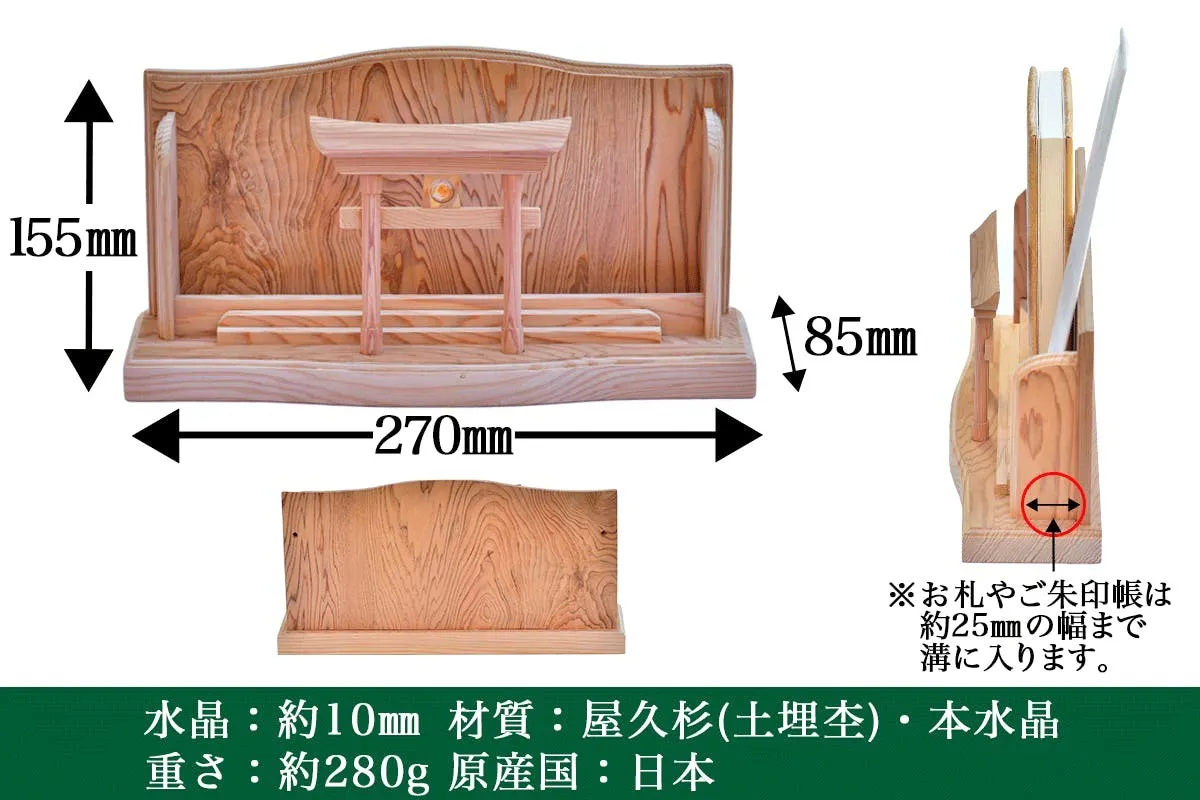 神木 屋久杉で作る 水晶鳥居付き「御札・御朱印帳飾り」です。