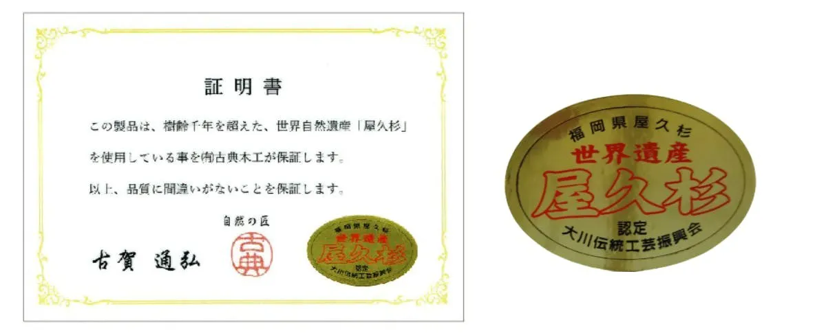 屋久杉の製材からデザイン、企画製造までを一貫しておこない、数々の屋久杉作品を手掛け、その卓越された技能から福岡県「現代の名工」、大川市の「現代の匠」にも認定される第一人者。