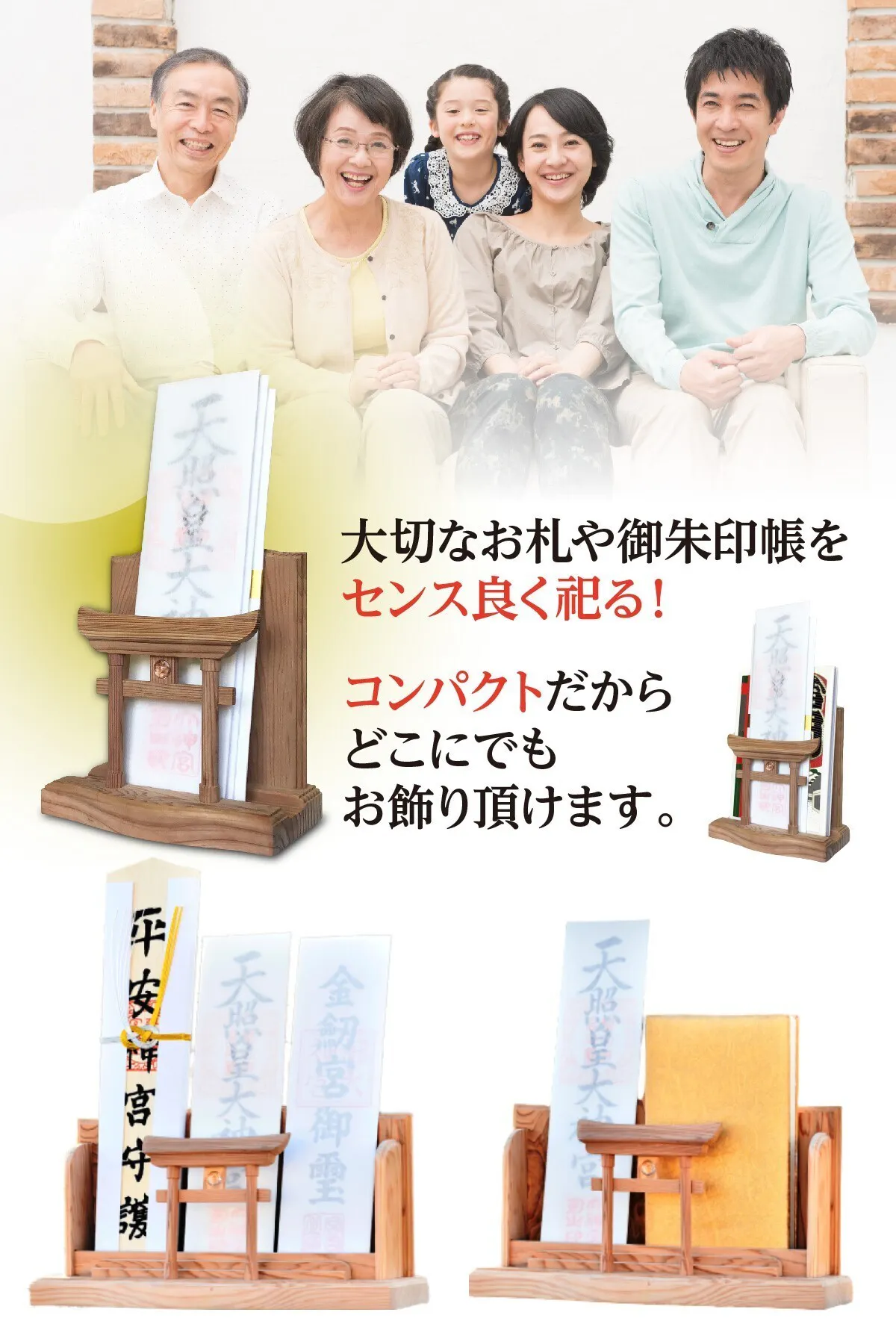 神社やお寺から授与された御札やご朱印帳などの保管場所って・・どうしよう!? そんな多くの声から誕生したのが、水晶鳥居付き「御札・御朱印帳飾り」です。