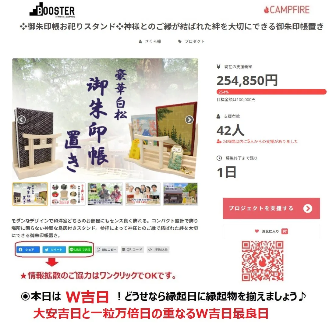 ●~*CAMPFIRE・BOOSTERのプロジェクトは↓