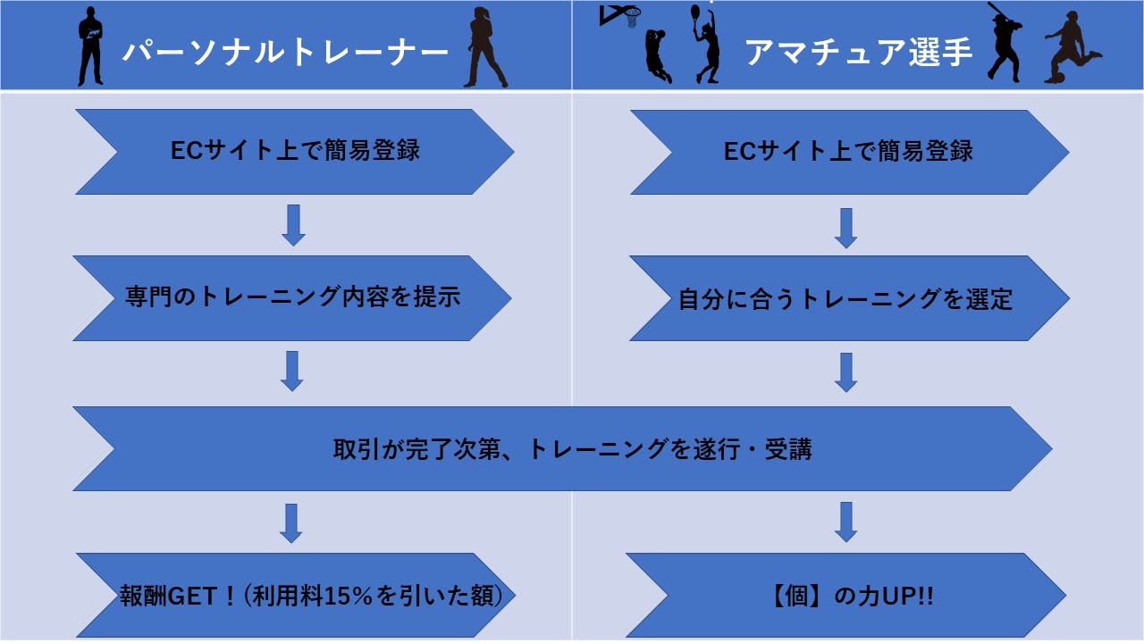 このプロジェクトではECサイトを通して、選手とトレーナーが出会える場を提供させていただきます。