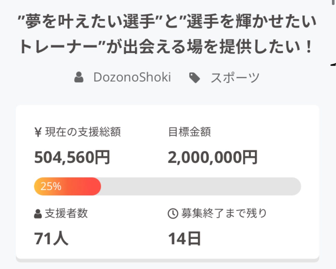 なんと!先程総支援額が50万円を突破致しました!本当にありがとうございます!