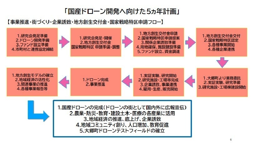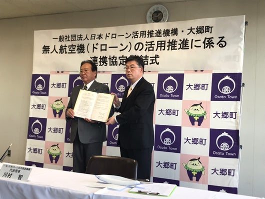 あわせて自治体と協議を重ねて目的を実現できる方法、手段を模索し、ご縁のあった大郷町と2020年12月9日に連携協定を締結しました。そして、大郷町ドローン活用特区研究会を設立し自治体と連携して国産ドローン開発を進めることにしました。