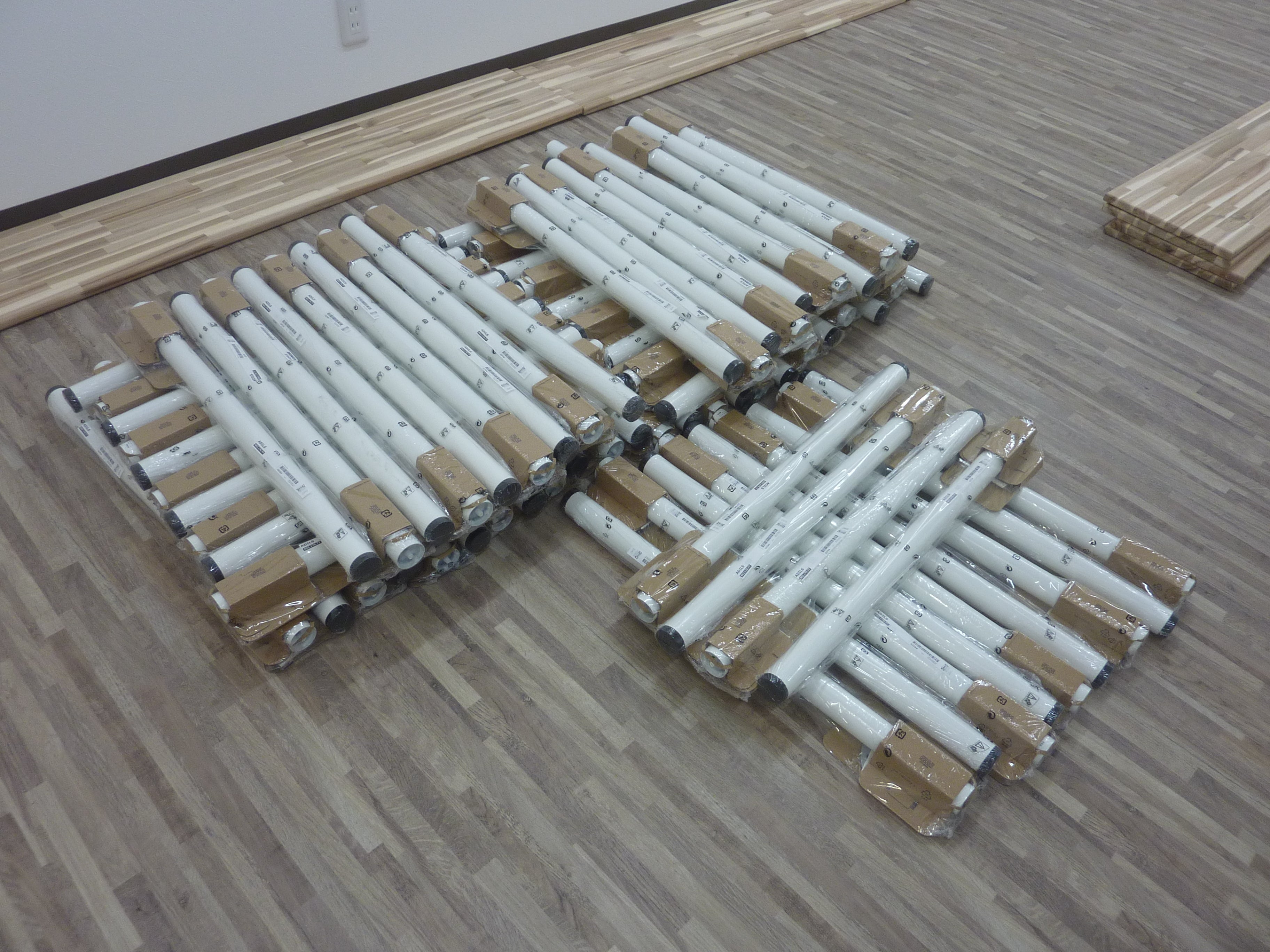 2021/03/29 20:49脚です!脚!とても多いです!重かったです!これから棚板に付けて行きます!壁紙の色と合わせ、白い色を選びました。脚の取付取り外しがとても楽なタイプなのでレイアウト変更をする際にも重宝しそうです。 明日でクラウドファンディング終了となります。進捗状況を記してきましたが、完成まで書き切る事が出来ませんでした。そこでgalleryTetoTetoのホームページにクラウドファンディングのご支援者様の広告枠と共に、完成までの道のりを書き綴ろうと思います。 もっと見る【gallery TetoTeto】店舗工事 進捗状況 ㉔