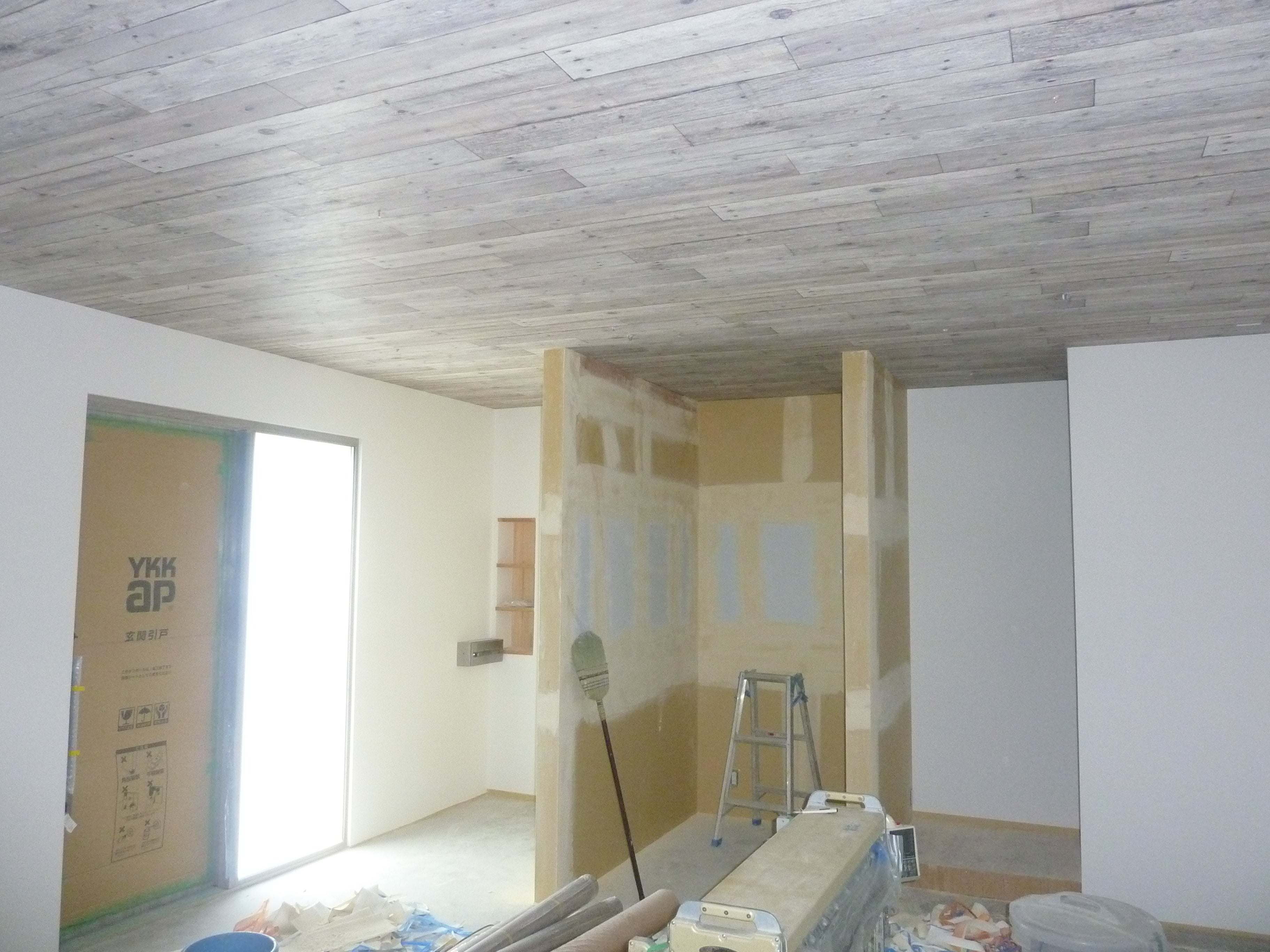 天井の壁紙が貼り終り側面の壁紙が半分以上終わりました!