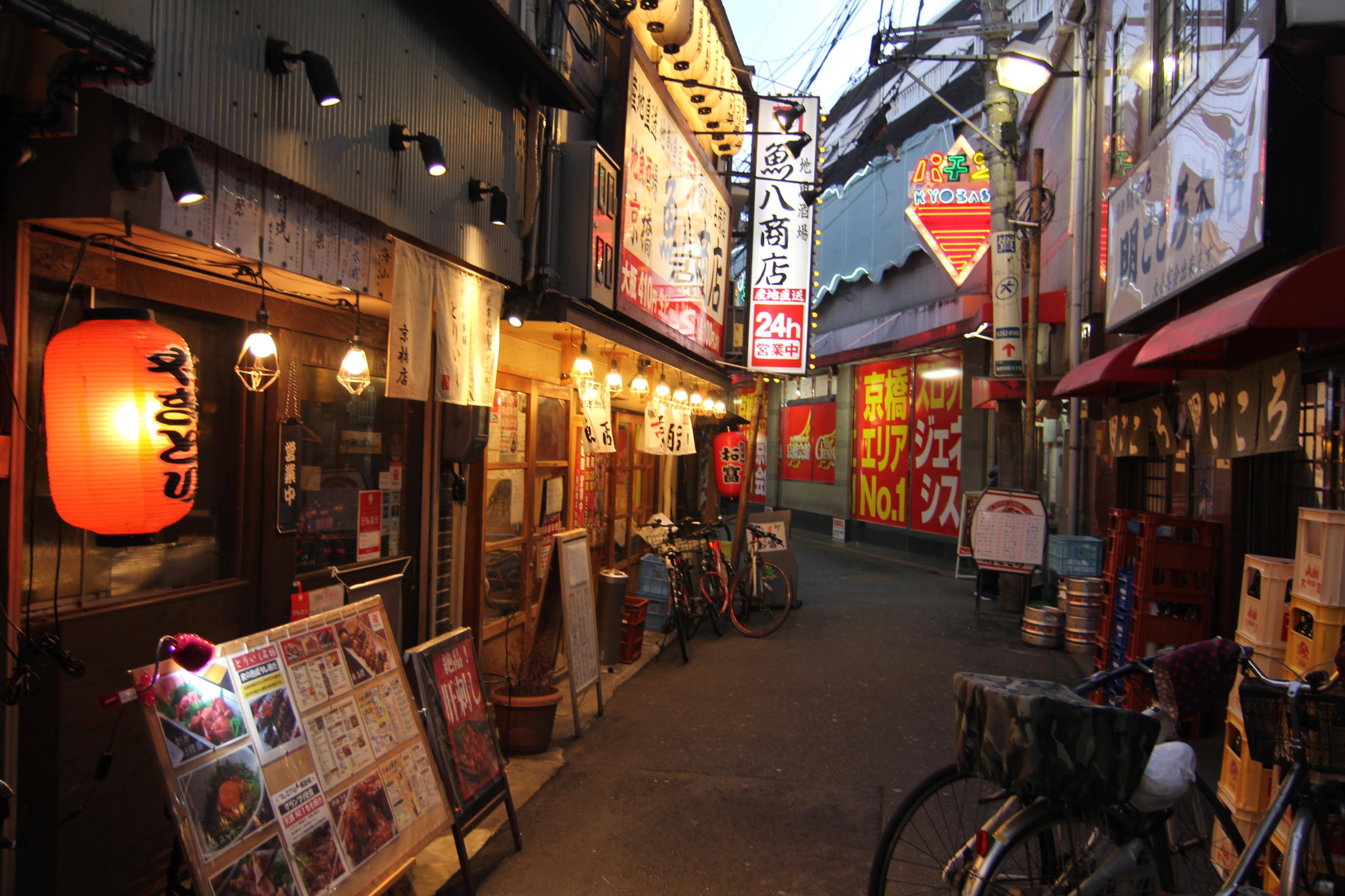 駅前地域には京橋特有の文化である立ち飲みの居酒屋など多くの飲食店が集まっていることも特徴的です。関西ローカルのテレビ番組でサラリーマン、主婦、学生向けの街頭インタビューでよく登場しますね。