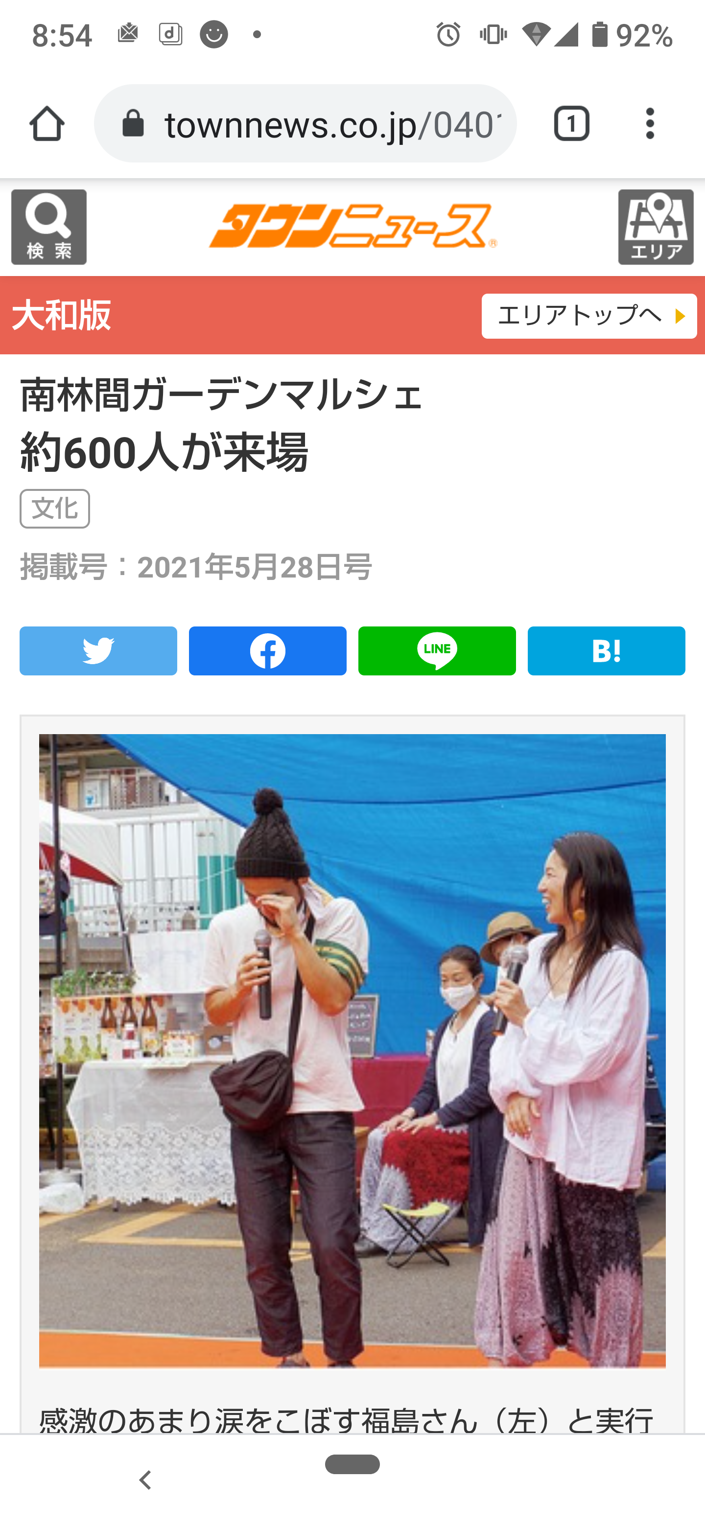 2021/05/28 11:18おはようございます。南林間ガーデンマルシェの様子がタウンニュースさんに掲載していただきました。盛り上がったイベント、楽しかったイベントとしてご紹介いただけたこと本当に感謝しております。ありがとうございました。当日親子で取材頂いた記者の方からこんなご連絡いただきました。娘も知り合いのお母さんも呟いた「楽しかった」「嬉しかった」の言葉が印象的でした。そんな風に感じて頂いたイベント。反省点もたくさんあります。この反省を活かしてもっとみなさんに寄り添うイベントを仲間を増やして実行して行けたらいいなと思い、地元イベントを開催するためのヒントを共有させていただく機会を増やしていこうと思います。イベントは終わりましたが続けるための行動を止めずに進んでいこうと思います。https://www.townnews.co.jp/0401/2021/05/28/576626.html もっと見る