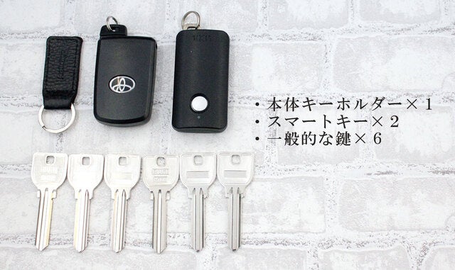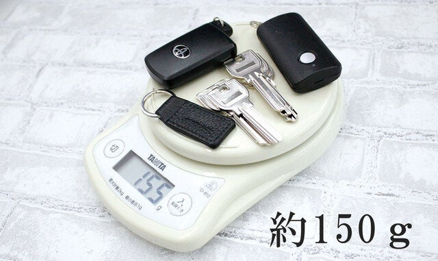 約155gの一般的な鍵6本とスマートキー2個の総重量。こんなに重たい鍵をぶら下げても安定して引っ付きます。