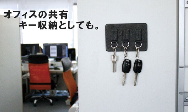 キーホルダー単体にもマグネットが入っているので、鉄製のモノにくっ付けておくことも可能です。