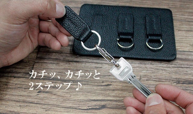 キーホルダーから鍵を取り換える際、毎回2重カンを通すのが面倒臭い方にオススメ。カチッ、カチッと、2回の工程で鍵とキーホルダーを取り付け可能です。
