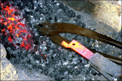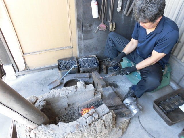 色で温度を見極め鎚打つ。熟練の鍛冶職人しかできません