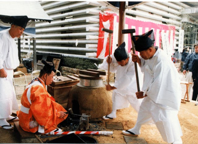 二人が交互に「テン、カン」と鎚の音が響きます。これが相槌(向こう鎚)の語源です。