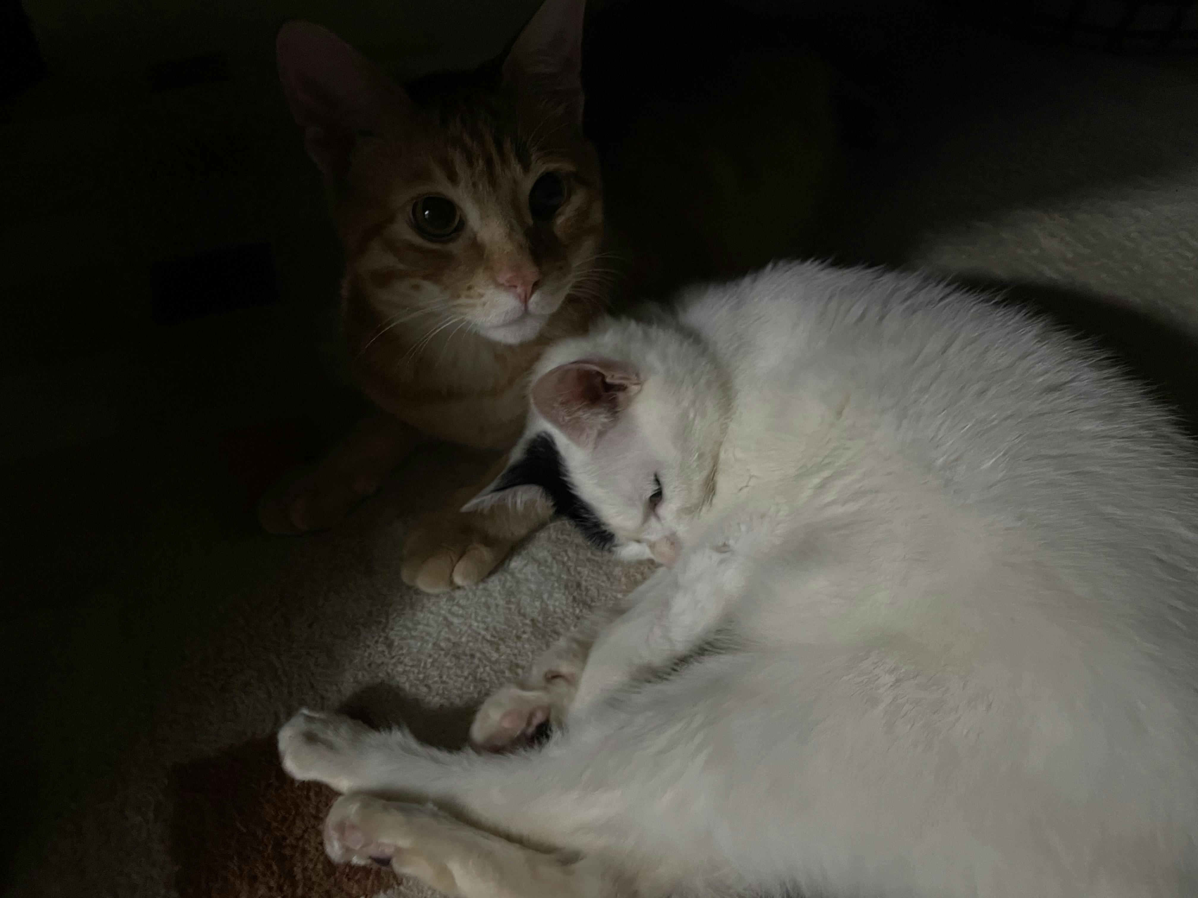 お風呂からあがるとちゃちゃとしろさんが寄り添いあって寝ていました^^