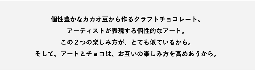 「アート×チョコレート」は、この思いの根幹にある考え方なのです。