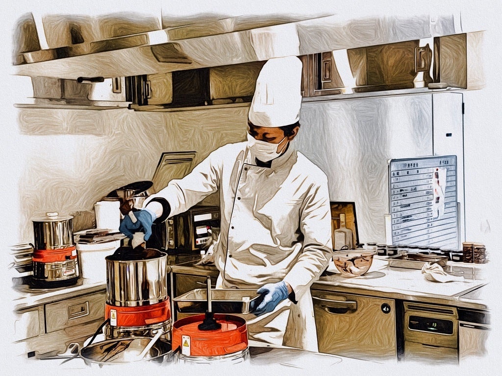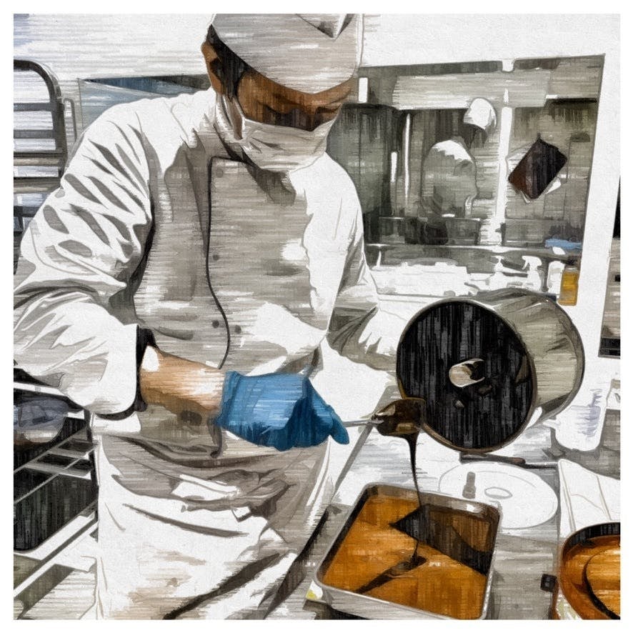 ショコラティエ宮根の作業風景(アート風に写真加工済み)