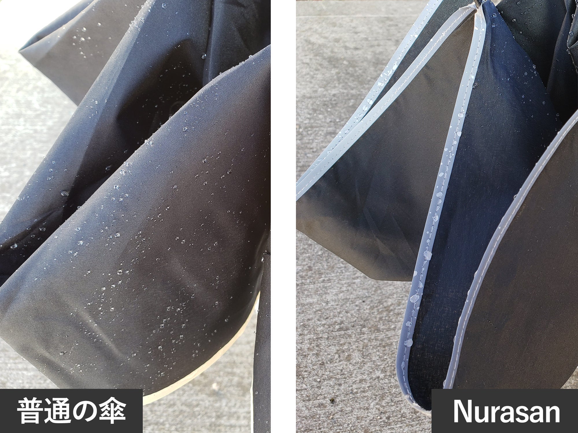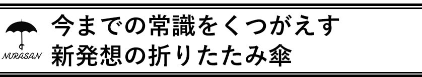 Nurasanとは、濡れた面を内側に折り込むことで、自分も周りも濡らさない、ビジネスマンのための折りたたみ傘です。