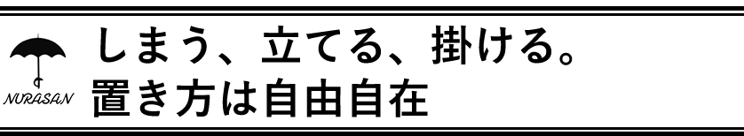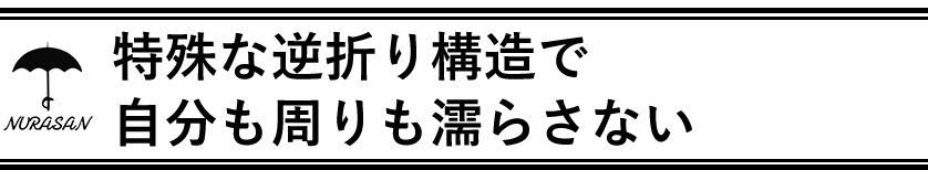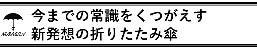 Nurasanとは、濡れた面を内側に折り込むことで、自分も周りも濡らさない、ビジネスマンのための折りたたみ傘です。