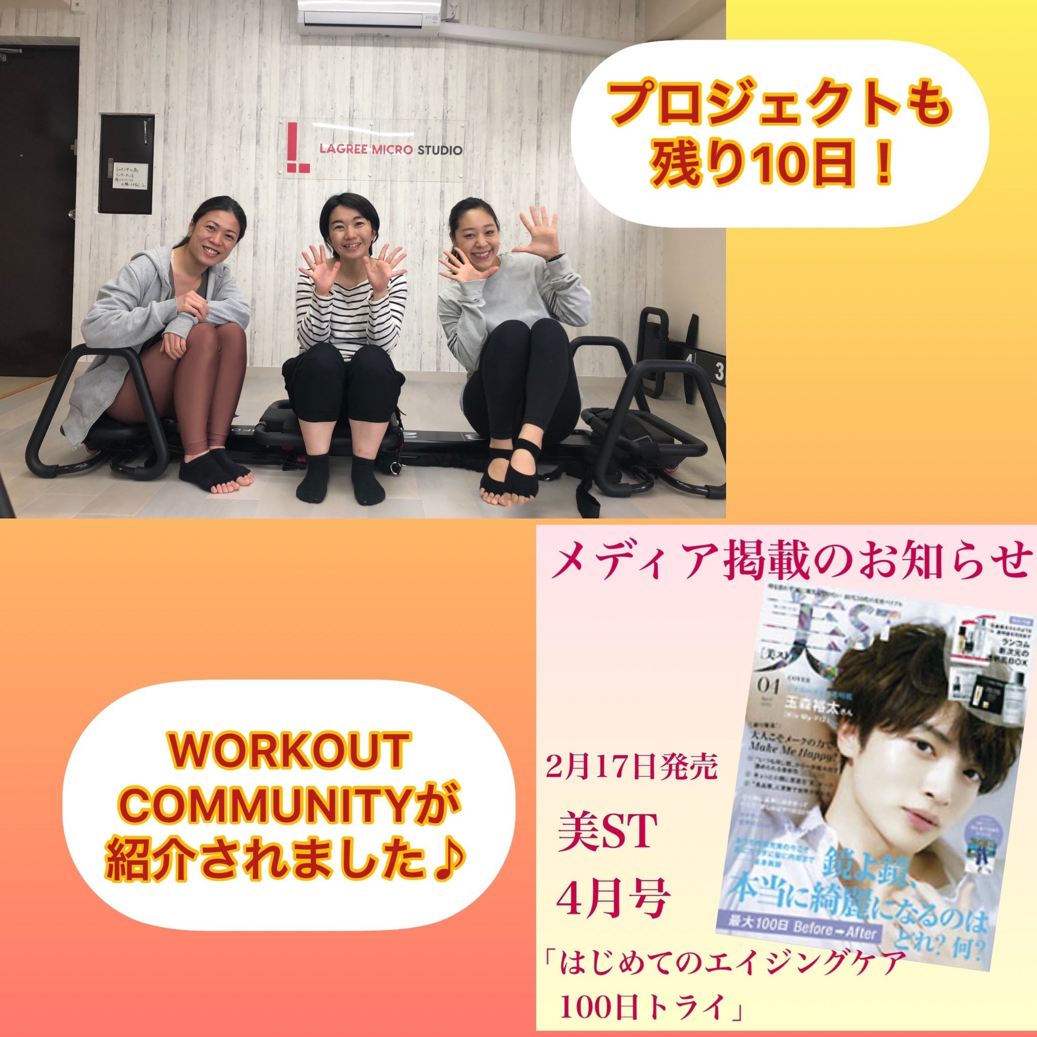 2月17日発売の美ST4月号「マンガでわかるはじめてのエイジングケア100日トライ」にて、オンラインフィットネススタジオ「WORKOUT COMMUNITY」を掲載いただきました!