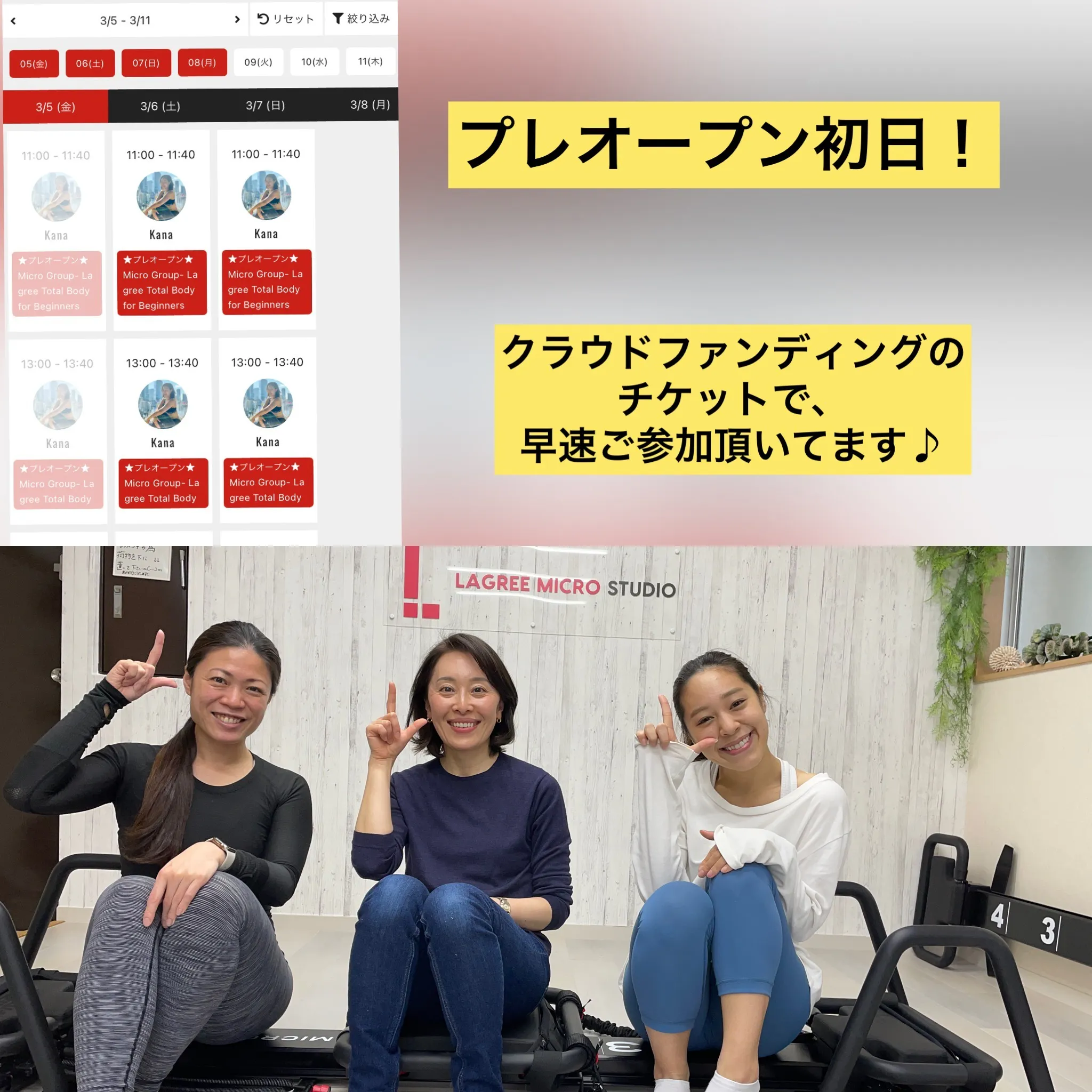 プレオープンは、7日まで開催しています。1,100円(通常トライアル価格の50%割引)でご参加いただける他、入会金無料・初月会費半額などの特典もご用意していますので、ご興味のある方はぜひこの機会にいらしてください!最近は、ヨガをやっている方が「筋力をつけたい」との目的でラグリーフイットネスに興味を持つことも増えています。