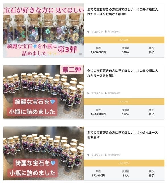 2021/02/26 16:11この度は皆様のたくさんのご支援頂きありがとうございます。アクアマリン瓶の目標を大きく達成することができました。今回基本的にはレターパックライトで発送させて頂きます、内容によってはレターパックプラスになります。今週すべて発送が完了しました。こちらで、追跡番号を管理しております。 1週間たっても届かない方はご連絡ください。今回は抽選で上記の写真のようなものをプレゼントしています。こちら、元宝(ゲンポウ)というシトリン(合成)になります、中国の昔のお金をかたどっています、金運UPに良いと言われています^^その下にあるのが、メノウのコースターになります。ディスプレイに使ったり、綺麗なグラデーションになっています。最後になりますが、宝石は無くても生きていけます。必需品ではありません。しかし宝石があればもっと心を豊かにしてくれる眺めるだけでストレスを減らしてそんな必需品になると私たちは信じています。また新しい企画やプロジェクトを行っていますのでまた次回お会いしましょう♪♪ もっと見る