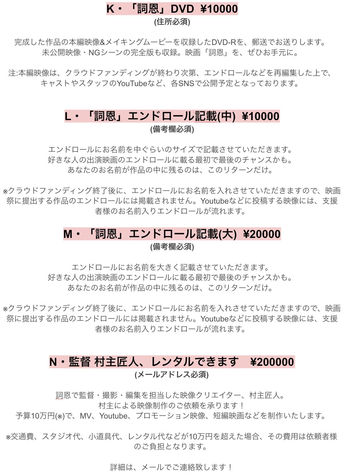ご支援いただいた金額が今回の制作費、クラウドファンディング利用手数料、リターンでの必要経費の合計を超える額が集まった場合には、次回作の制作費として、大切に使わせていただきます。