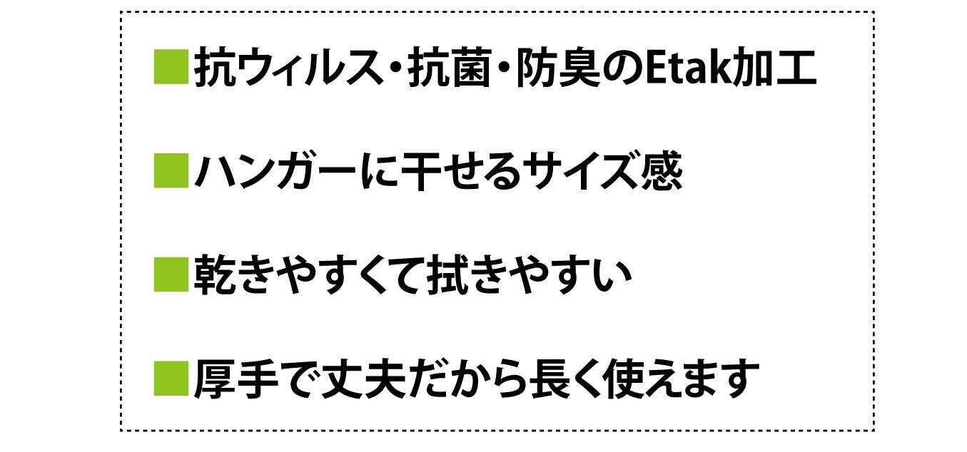 nokori-itoには「抗ウィルス」「抗菌」「防臭」のEtak加工を施しました。