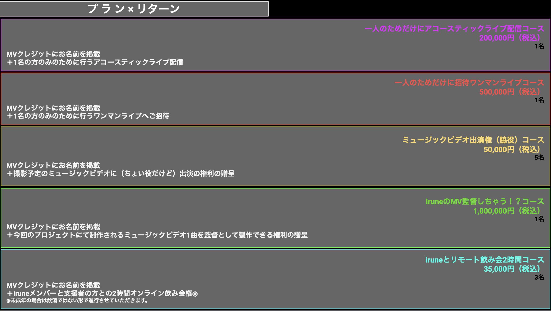 +iruneメンバーと支援者の方との2時間オンライン飲み会権