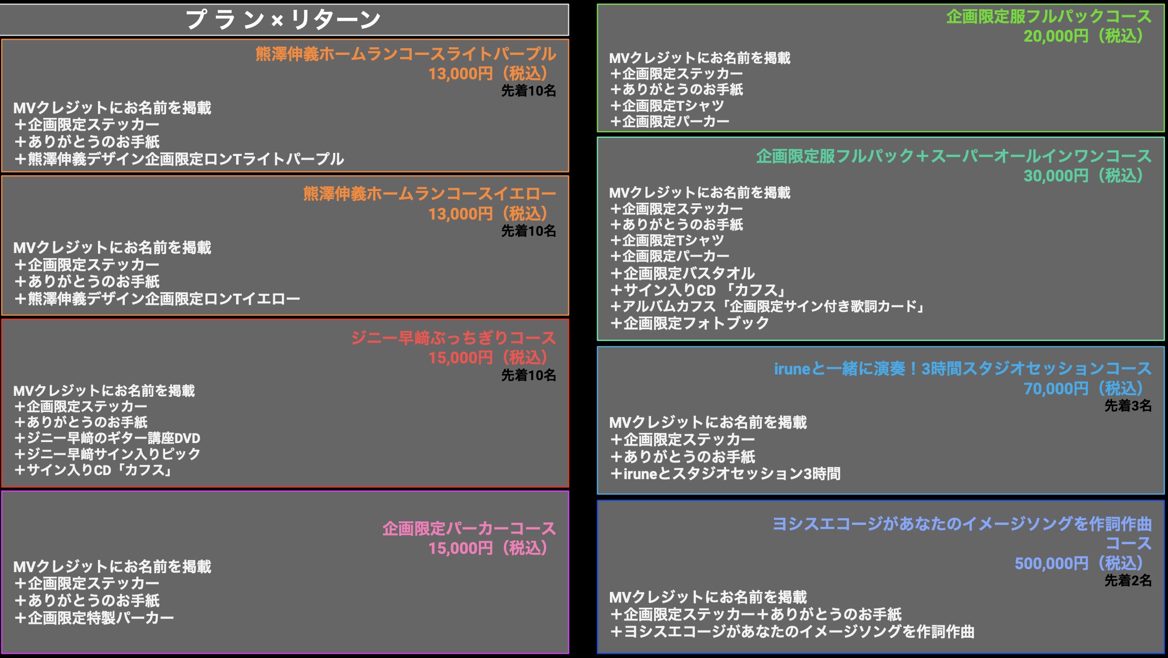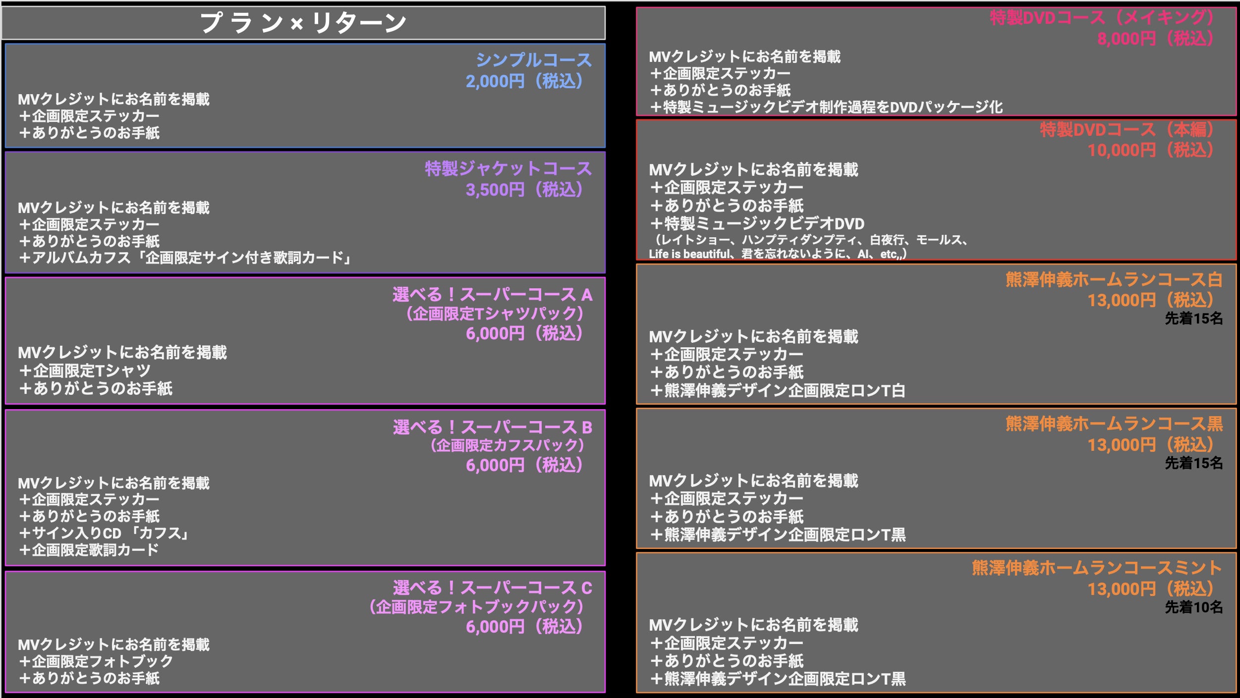 どのプランを支援していただいてもあなたが満足していただけるようなプロジェクトになれば幸いです。