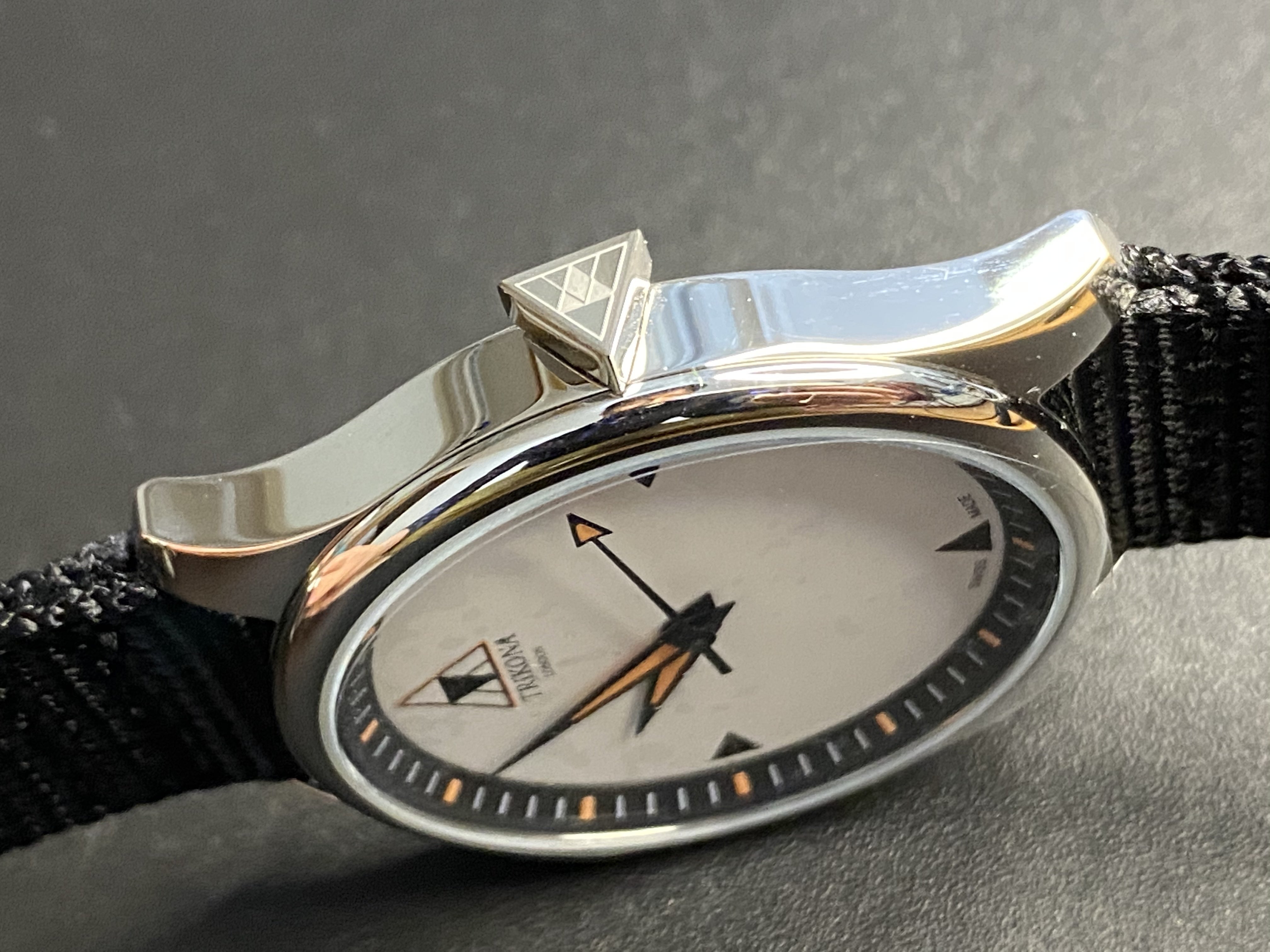 TRIKONA LONDON の特徴的なロゴデザインのリューズ