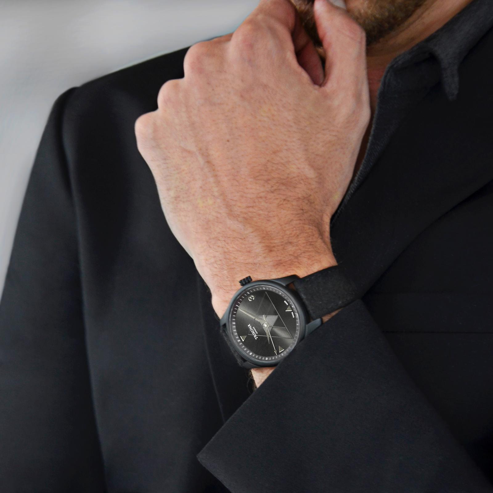 トリコナ ロンドンのSIGNATUREコレクションから、黒い輝き効果のダイヤルを備えた黒いPVDの見事な男性用時計、ENDURANCE。スイス製ロンダ713クォーツムーブメントを備えた40mmステンレス製、豪華なアルカンターラストラップの男性のためのエレガントな時計です。
