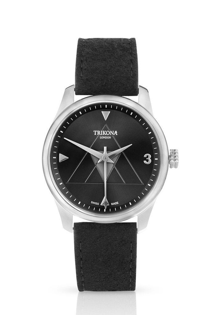 トリコナ ロンドンのSIGNATUREコレクションから、黒い輝き効果のダイヤルを備えたステンレス鋼の見事な男性用時計、RESOLVE。スイス製ロンダ713クォーツムーブメントを備えた40mmステンレス製、あらゆるシーンにあった豪華なアルカンターラストラップを備えた男性のためのエレガントな時計です。