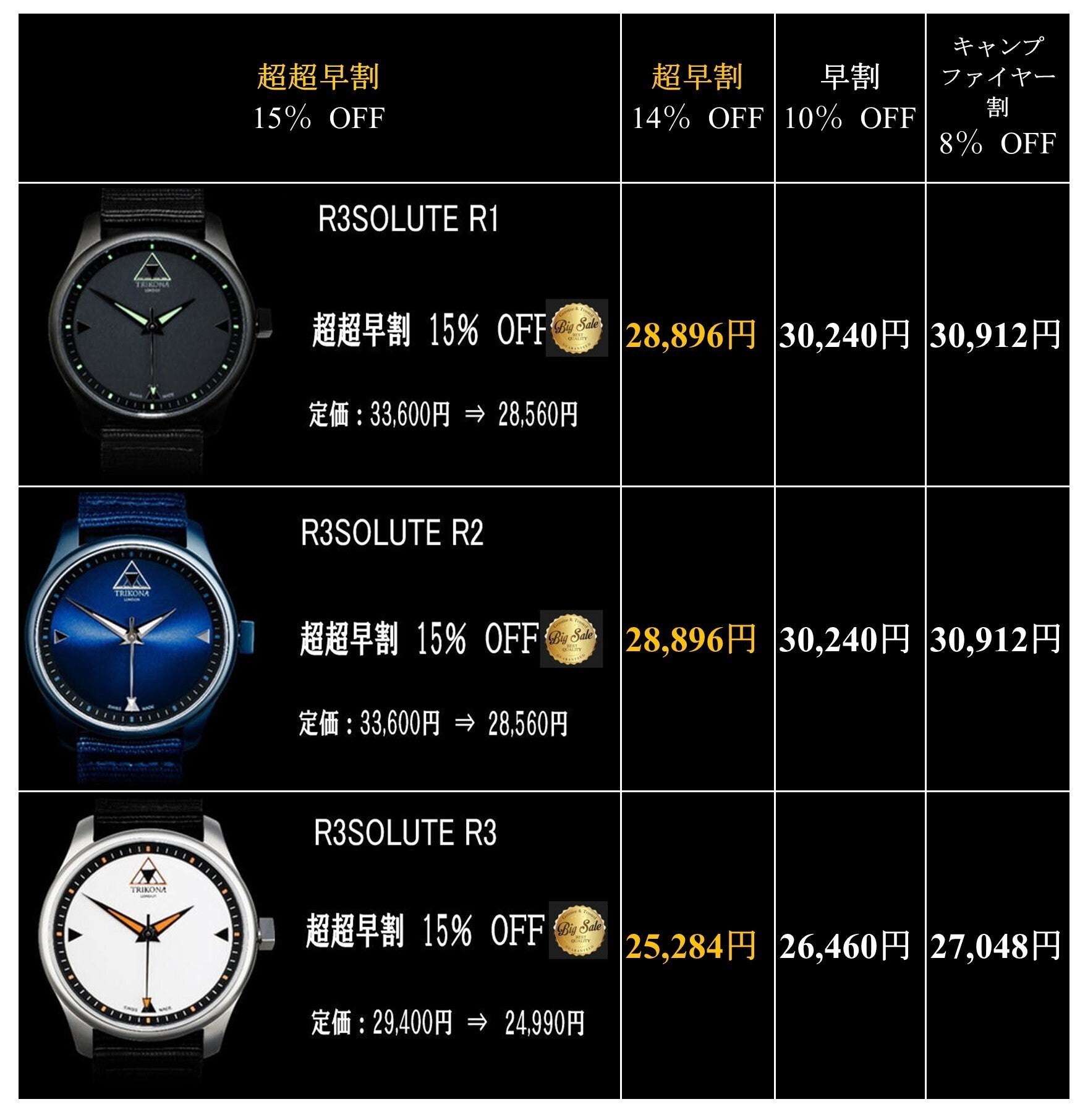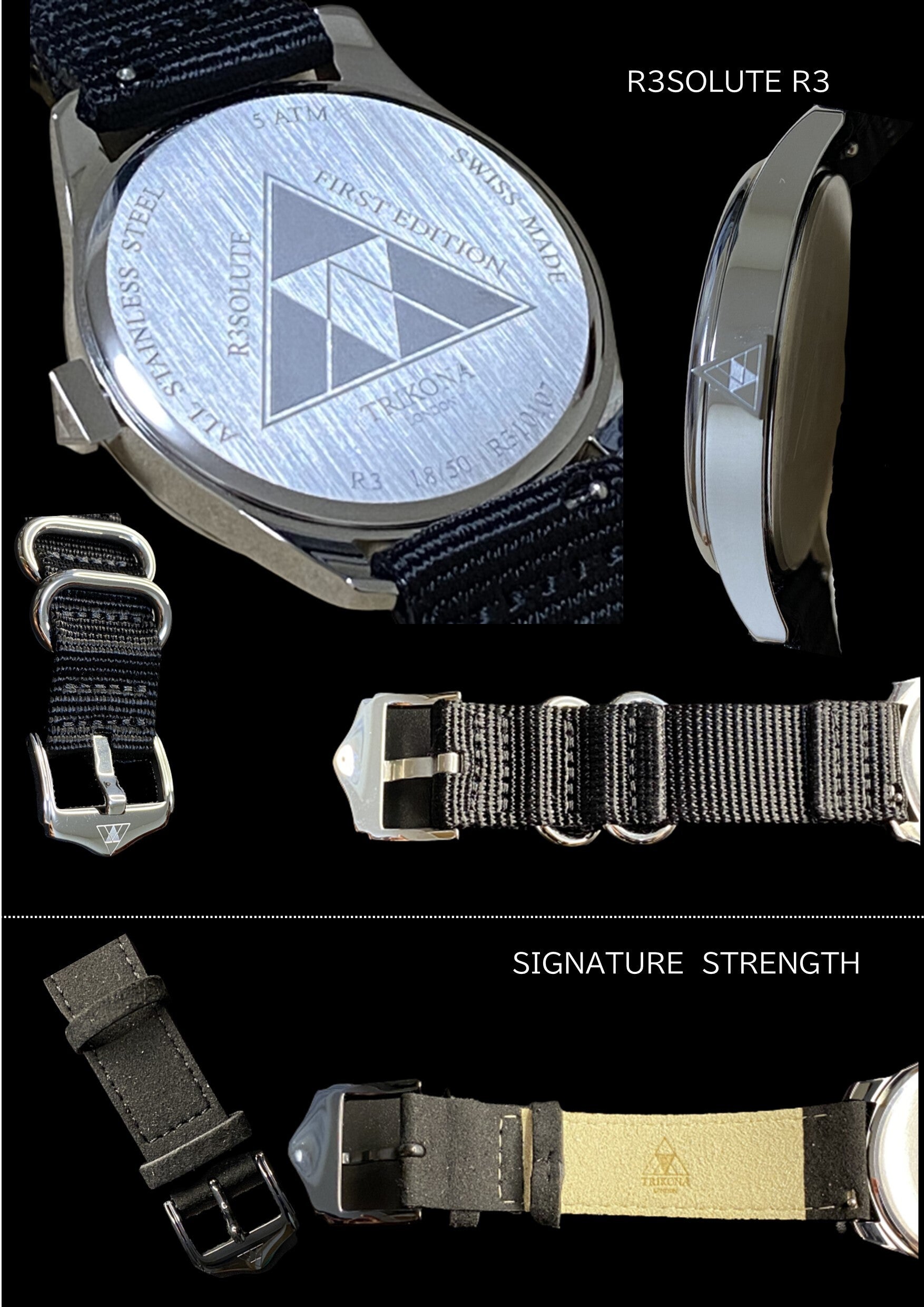 R3SOLUTEは、古典的で、エレガントなデザインにスポーティーな外装をもつお手頃な価格のスイス製腕時計です。おそらく世界で最も手頃な価格のスイス製時計を提供できたと自負しています。夜間でも判別できる蓄光性夜光顔料 (スーパールミノバ)を使用しています(R3を除く)。