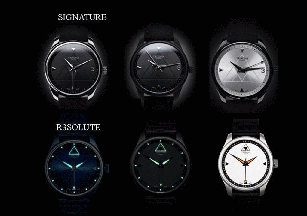SIGNATUREはTRIKONA LONDONの哲学を体現する旗艦モデルです。3つの力(The Power of 3 )の融合を文字盤に視覚的に表現しました。
