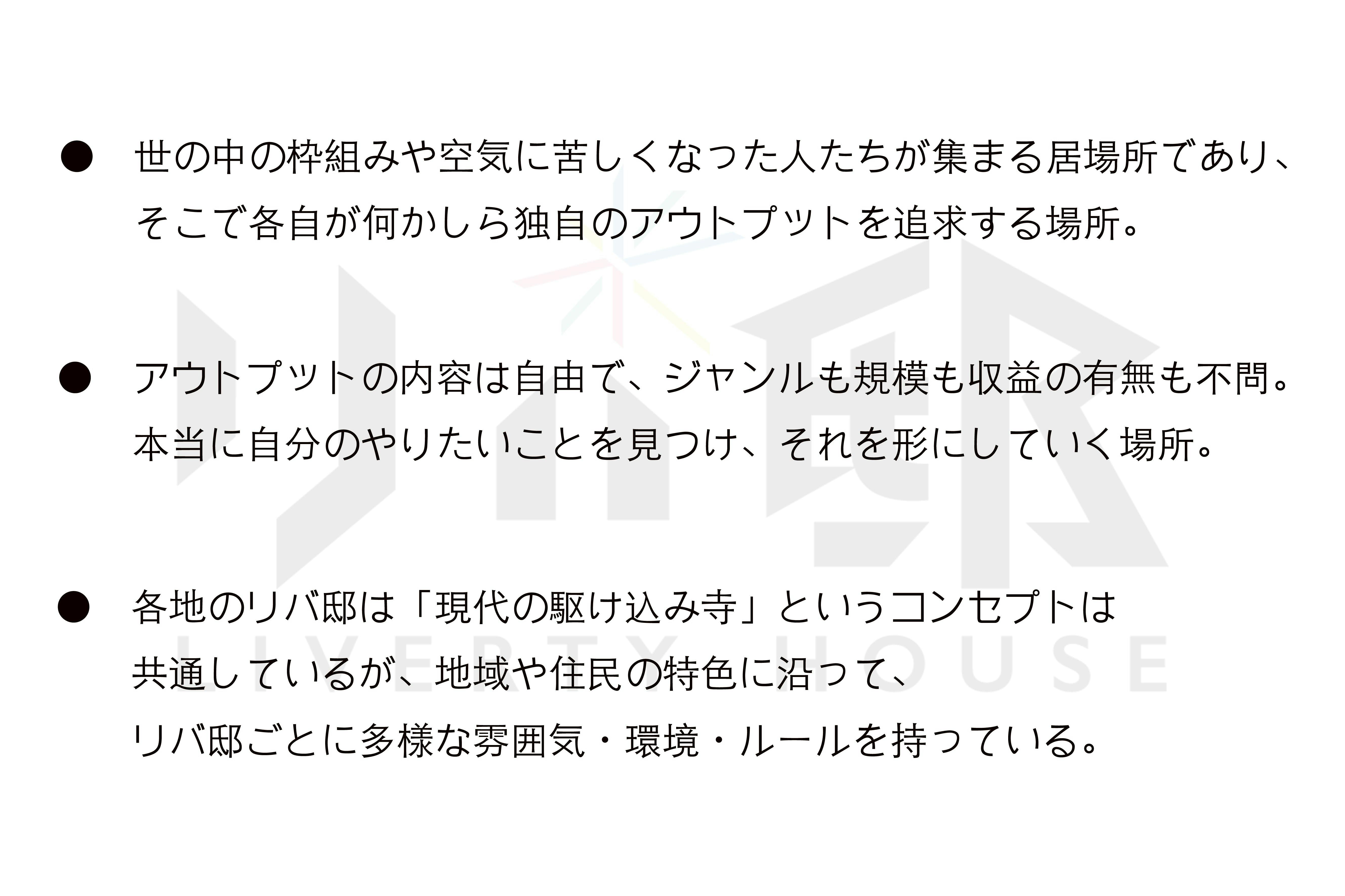 「シェアハウス兼ゲストハウス」という形式ですが、住人だけでなく、「人生息苦しい」と感じる人たちが気軽に集まってそれぞれが好きなことをできる「第三の居場所」と言えます。