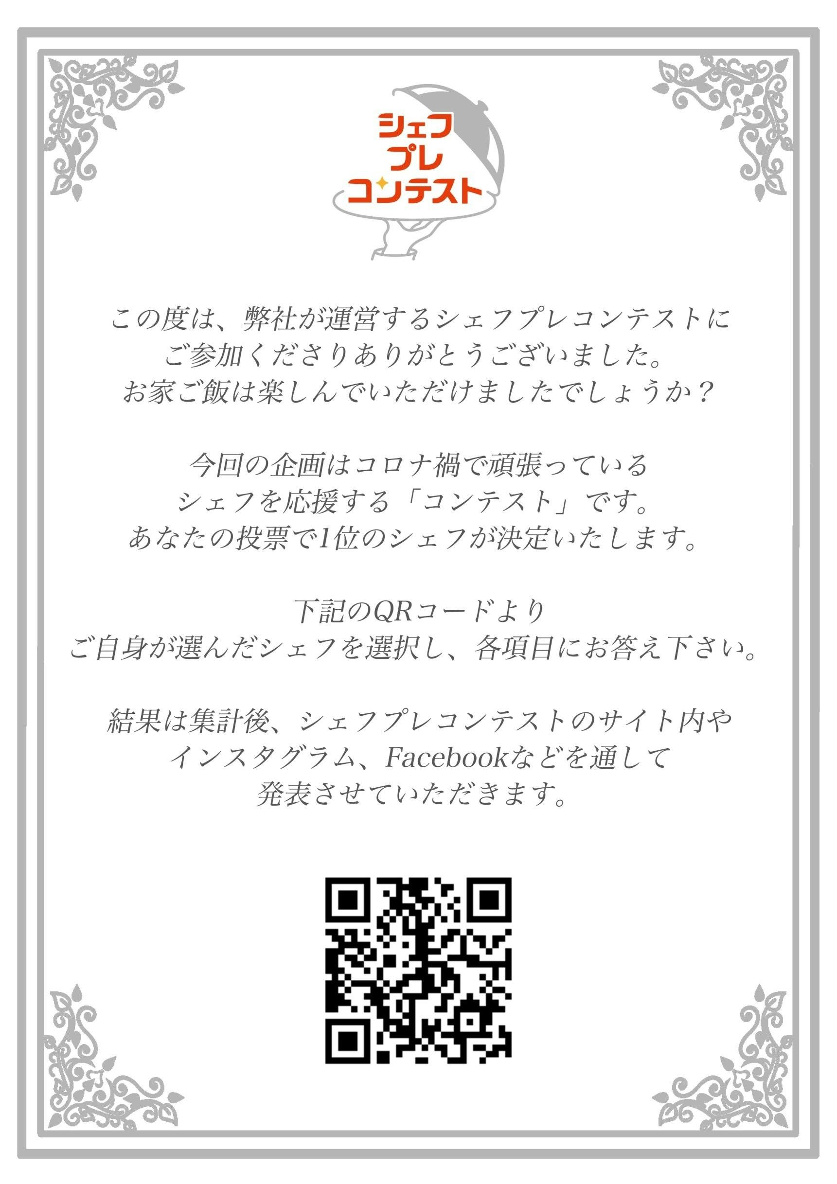 - 投票終了後、料理人コンテストの順位をWEBサイトにて8月に発表いたします。