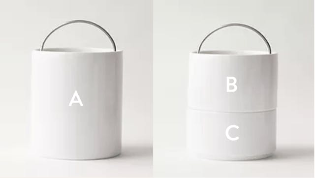すべての磁器容器には、持ち運びに便利な取っ手が付いています。持ちやすくするためにも、食べ物と取っ手が重ならないように量を調節して下さい。