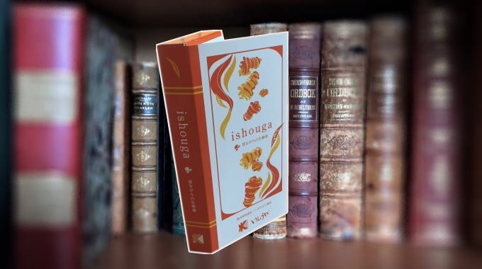 「いっしょうが」の定位置は、リビングなどの本棚です。縦置きができるブック型のパッケージは、いつも身近に置いておけます。また、ブック型には理由があります。新刊を発刊するように続々と新商品展開していきますので、リビングや書斎の一部を「いっしょうが」で固定して頂きたいと願っています。