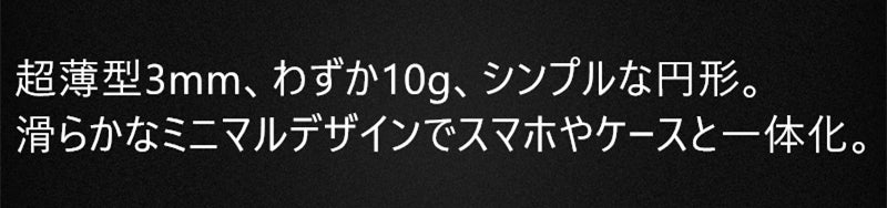 □ 超薄型3mm、わずか10g、シンプルな円形。滑らかなミニマルデザインでスマホやケースと一体化。
