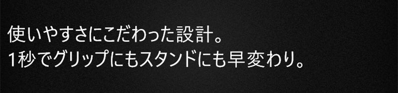 □ 使いやすさにこだわった設計、1秒でグリップにもスタンドにも早変わり。