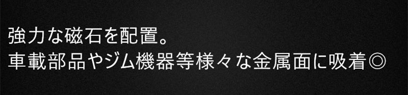 □ 強力な磁石を配置し、車載部品やジム機器など、様々な金属面に吸着可能。