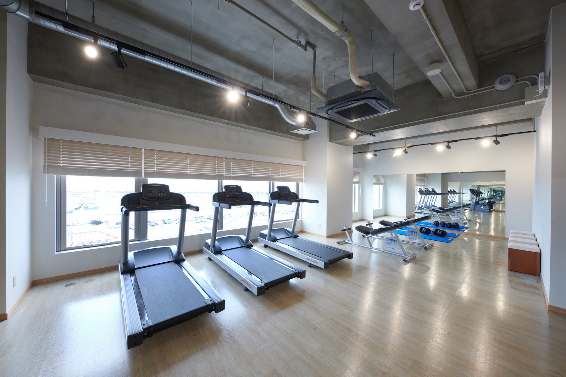 THIRD石垣島の最上階には、海を見ることができるフィットネスジムがありました。