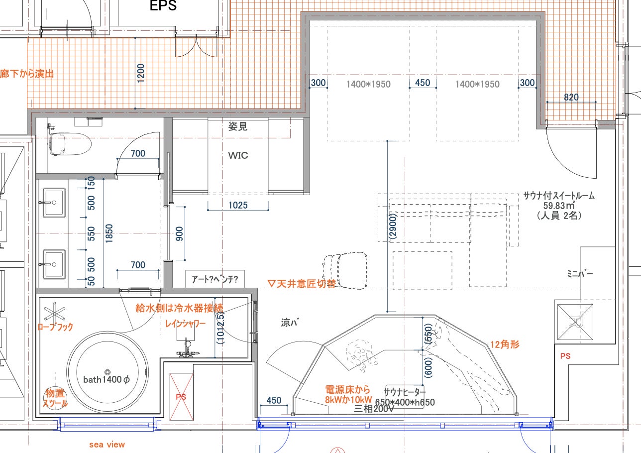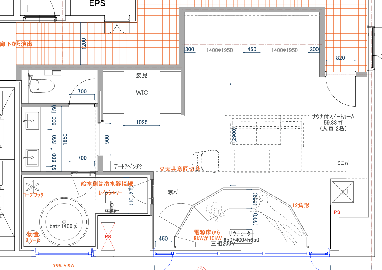 構想段階にあったサウナスイートルームの図面