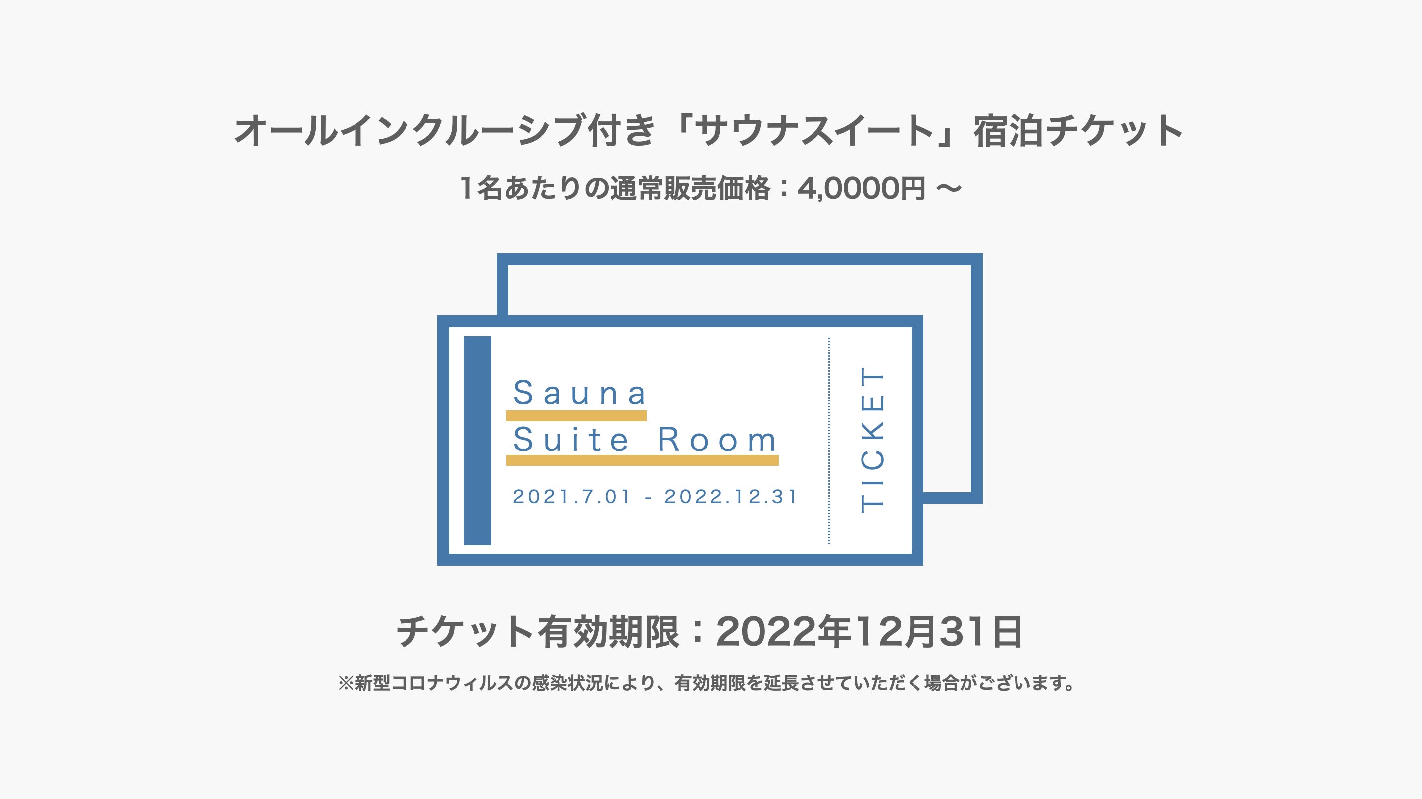 リノベーション後にご宿泊いただけるオールインクルーシブ付き「サウナスイート宿泊チケット」です。