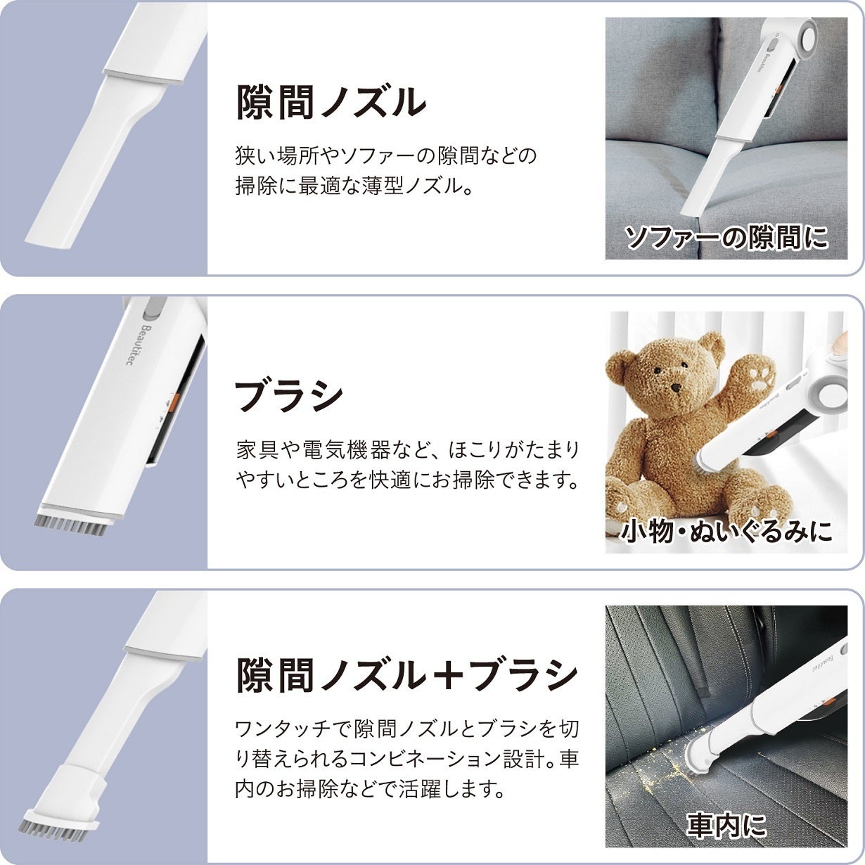 大きな掃除機では入らなかった隙間やわざわざ掃除するには億劫だった「ちょっと掃除したい」箇所も、いつでも「パッと取って、サッと使える」お掃除可能に。