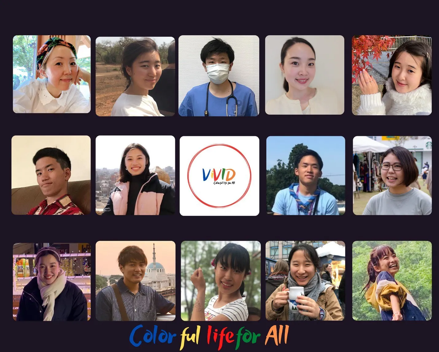 現在国際NGO ViVIDは、計20名のメンバーで活動しています。メンバーの個性や経験を最大限活かすために、主体性を重視した運営方針をとっています。メンバーは、欧州、東南アジア、アフリカ、日本で生活するメンバーで構成されています。また、学士・修士・博士過程に所属する学生から社会人まで、幅広い年齢層のメンバーで活動しています。農業、医療・福祉、教育、ジェンダー、環境、IT、国際開発の専門をバックグラウンドに持つメンバーが、地域コミュニティが抱える社会課題をコミュニティ毎に多角的に分析し、開発アプローチを日々研究しています。