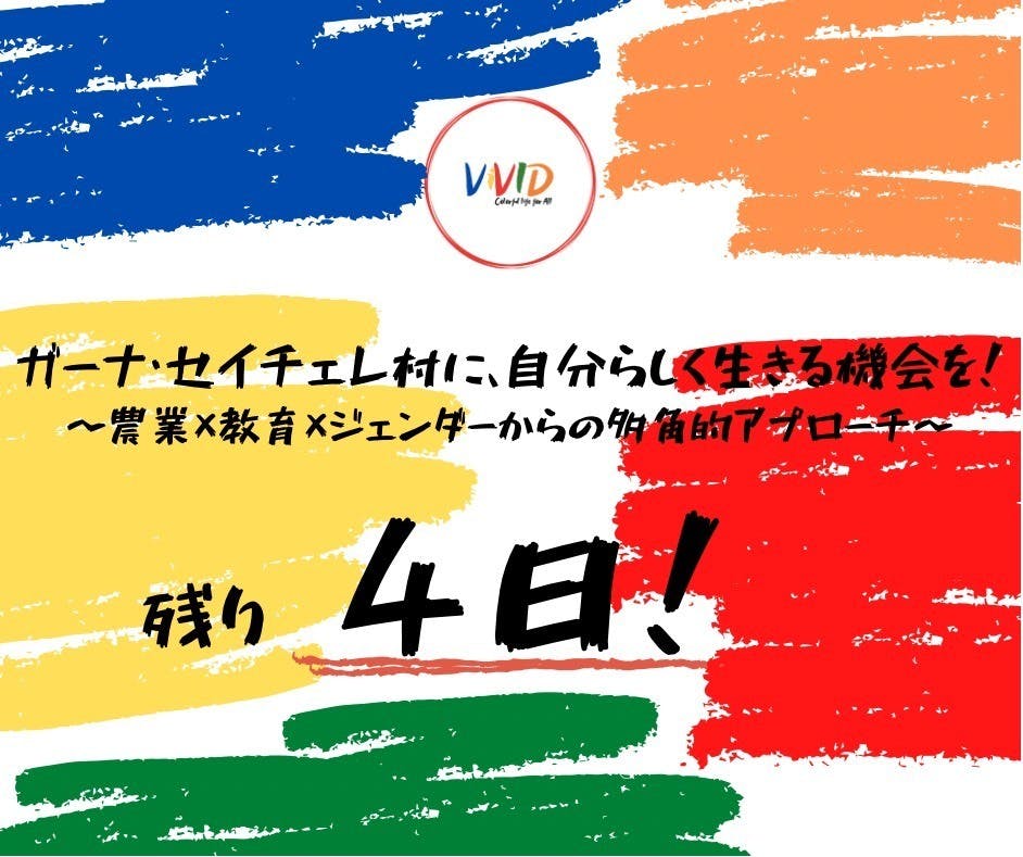 私たちは、国際NGO ViVID設立1周年の2021年2月15日にクラウドファンディングを開始し、残すところあと5日になりました。残りあと数日ではありますが、目標達成に向けて引き続き頑張ってまいります。皆様も、どうか応援のほどよろしくお願いいたします。