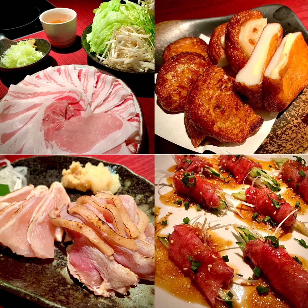 オーナー山﨑の出身である鹿児島のさつま郷土料理と名産の鹿児島黒豚を使用したしゃぶしゃぶ、肉料理店出身の料理長による鹿児島黒毛和牛によるアラカルト肉料理、さつま地鶏のお刺身の他にも、全国各地の食材を取り寄せ"旬"に合わせた様々な料理をお客様のニーズに沿ってご提供させて頂きます。