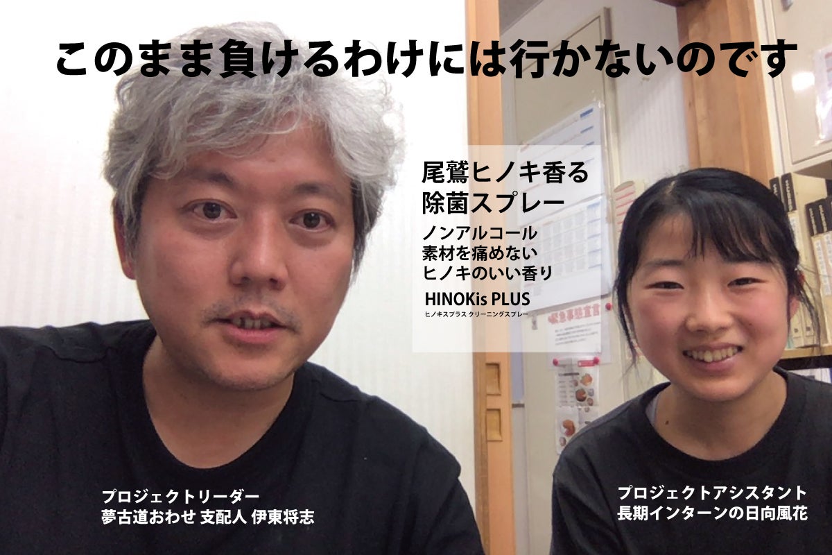 このヒノキスプラスを使って、大切な人や大切な場所を守りたい!今の難しい時代に答えを模索する中で、プロジェクトの立ち上げを決断いたしました。どん底の状況から想いの込もった除菌水を完成させることができました。